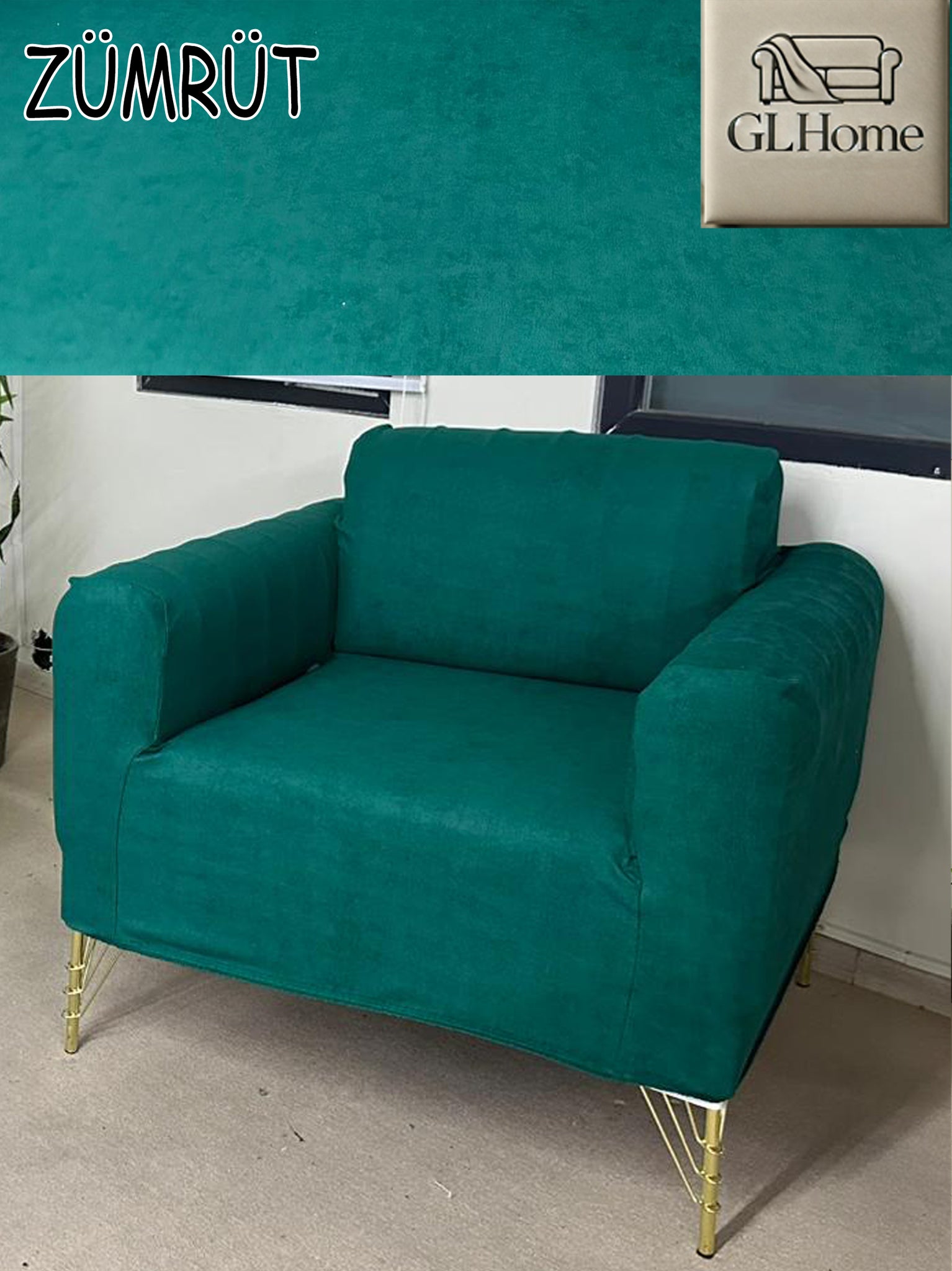 Süet Kumaş Zümrüt Tekli&Berjer Komple Giydirme, Bohem, Porto Model Koltuk Kılıfı